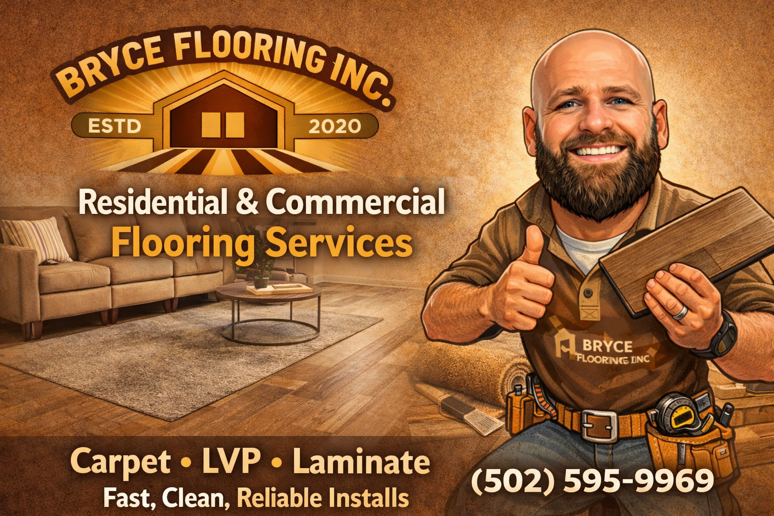 Bryce Flooring is a trusted flooring company specializing in professional installation of carpet, luxury vinyl plank (LVP), laminate, and hardwood for both residential and commercial spaces. From full renovations to simple upgrades, every project is handled with precision, quality materials, and attention to detail to ensure a clean, long-lasting finish.